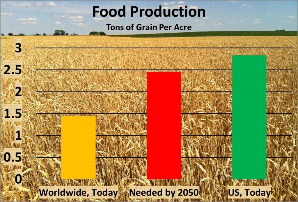 Perhaps we can reduce that food demand growth rate, by cutting food waste or by cutting meat demand (more on that another day). But for now, I want to ask the question: Can we raise food production by 70% by 2050?