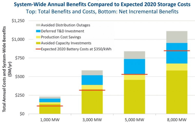 The study authors concluded that this additional battery storage would slightly lower consumer electrical bills, reduce outages, reduce the need to build added capacity (by shifting the peak, much as a home battery would), and similarly reduce the need to build additional transmission and distribution lines.