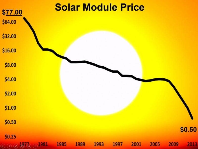 We have 50 cent per watt solar module prices today. Solar module prices are 15 years ahead of where those (at the time, optimistic) projections in 2011 placed them.