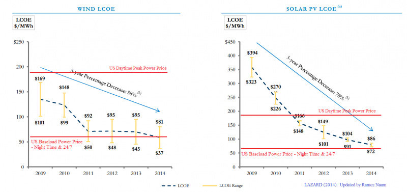 Solar and Wind Plunging Below Fossil Fuel Prices