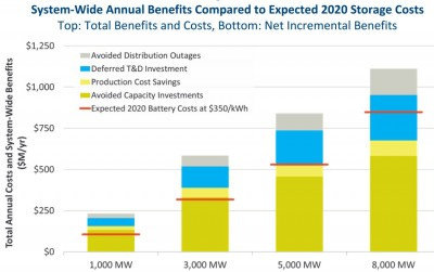 For example, a study conducted for ERCOT, the Texas power grid, found that below a cost of $350 / kwh, ERCOT would benefit from deploying 8 gigawatts and 24 gigawatt hours of battery storage.