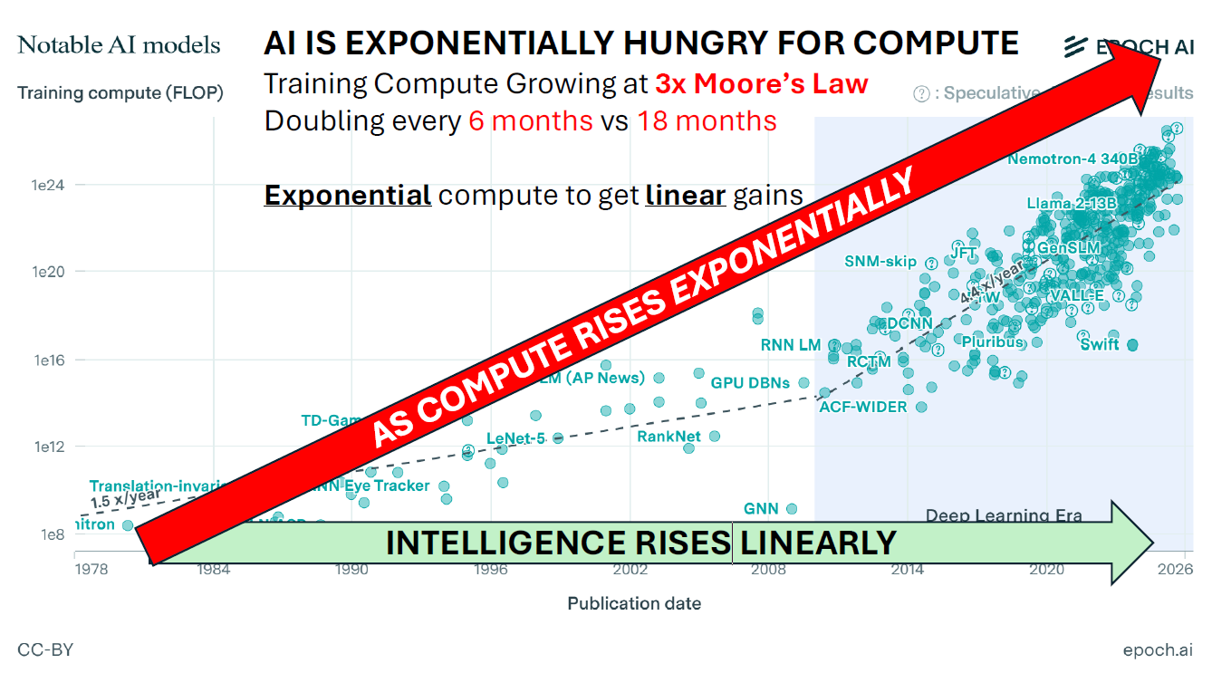 AI scaling hits diminishing returns — exponential compute for linear gains