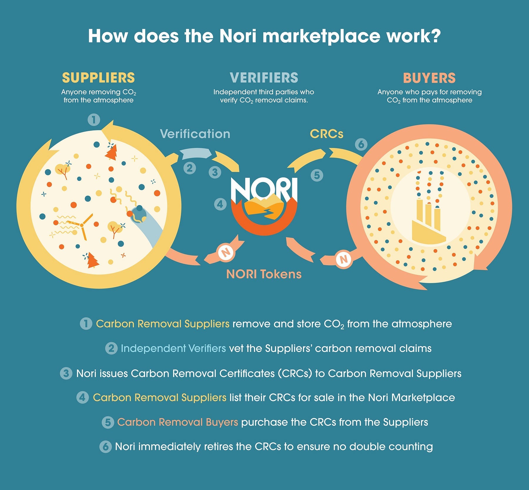 Here’s how the Nori blockchain marketplace for carbon removal works, in more detail: